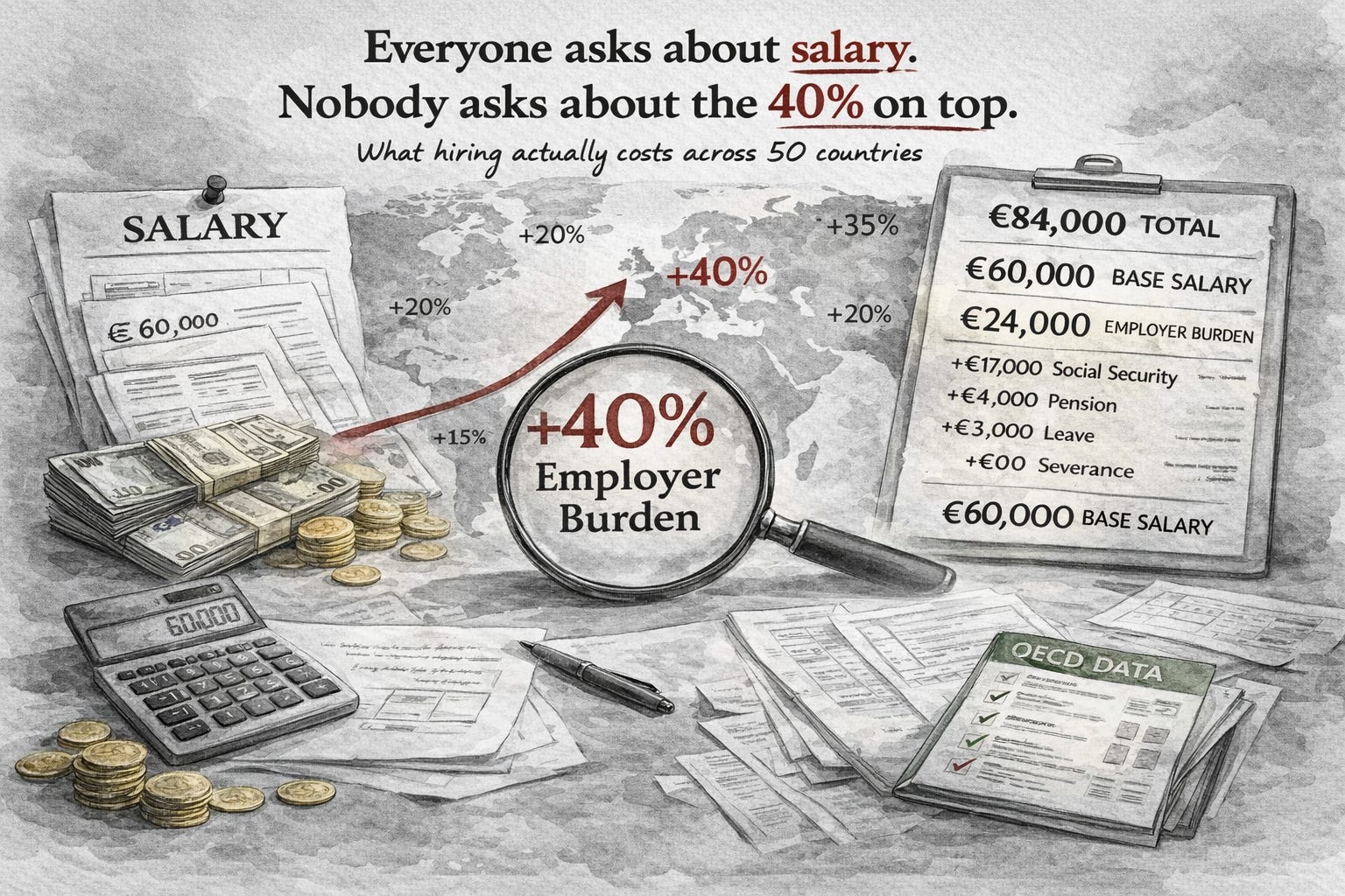 Why does this matter for how companies actually make decisions? Because I keep seeing the same pattern. A company wants to hire in a new country. They look at local salary benchmarks, pick a number that feels competitive, and assume that’s the budget line. Then the invoices start coming in and nothing adds up. The employer burden was never factored in.